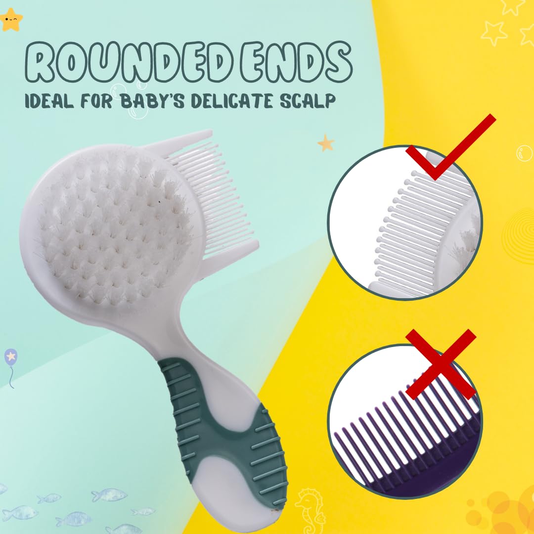 his comb has an integrated smooth teeth section to comfortably glide through baby's hair.