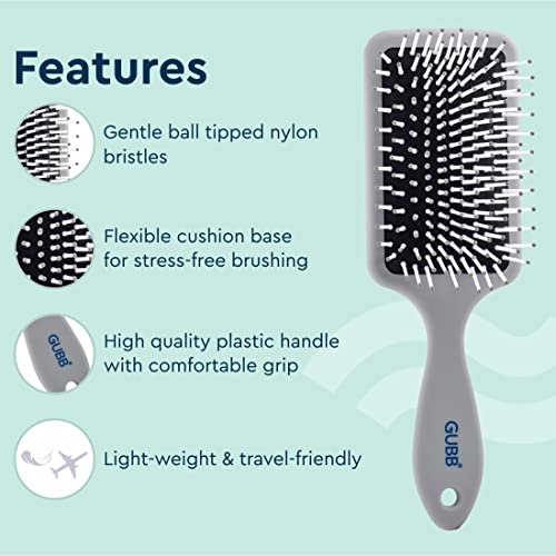 GUBB Paddle Hair Brush for Detangling & Straightening - Ultra Soft Flexible Nylon Bristles | Cushioned With Pin for All Types - Women, Men, Wet and Dry - Serenity Hues