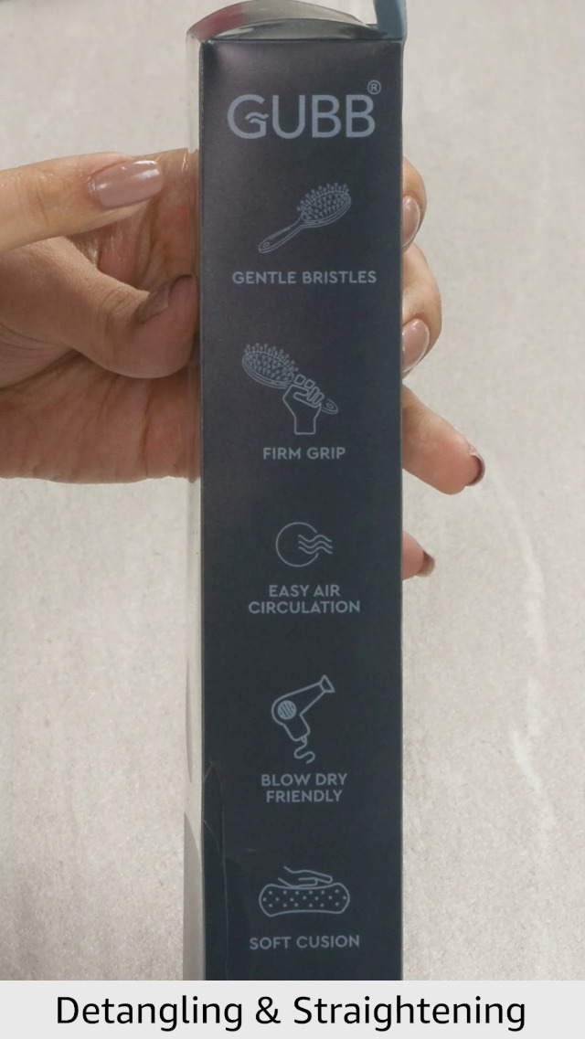 The rubber grip in the handle helps to do convenient styling and the handle hole is perfectly designed to hang and store the hairbrush.