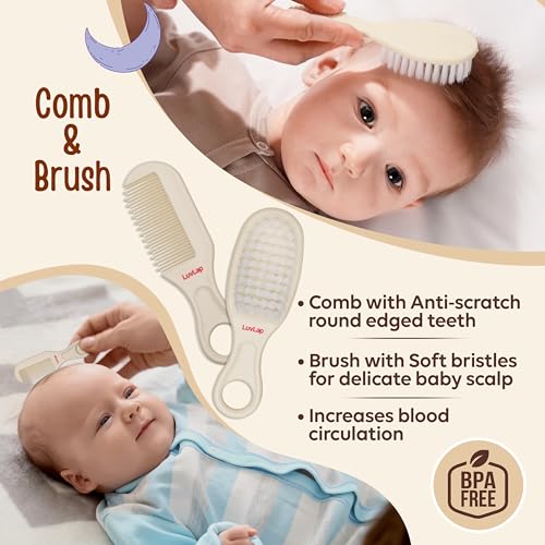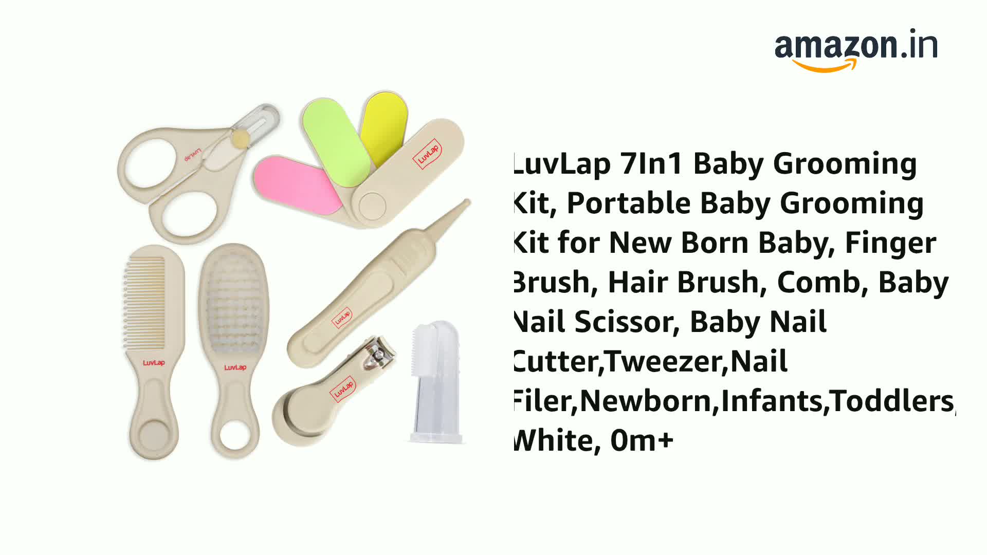 LuvLap 7In1 Baby Grooming Kit, Portable Baby Grooming Kit for New Born Baby, Finger Brush, Hair Brush, Comb, Baby Nail Scissor, Baby Nail Cutter,Tweezer,Nail Filer,Newborn,Infants,Toddlers, White, 0m+