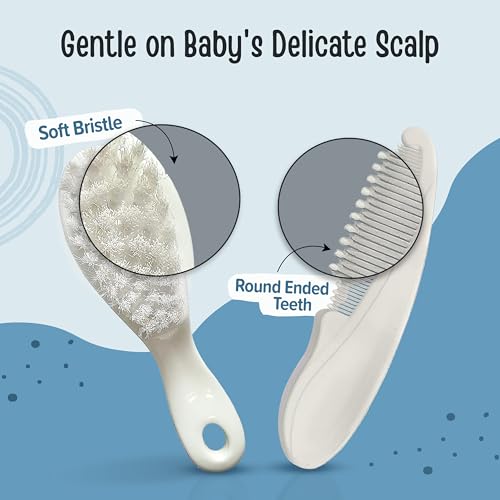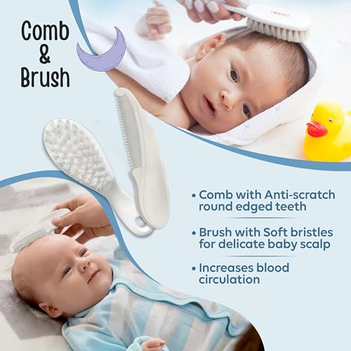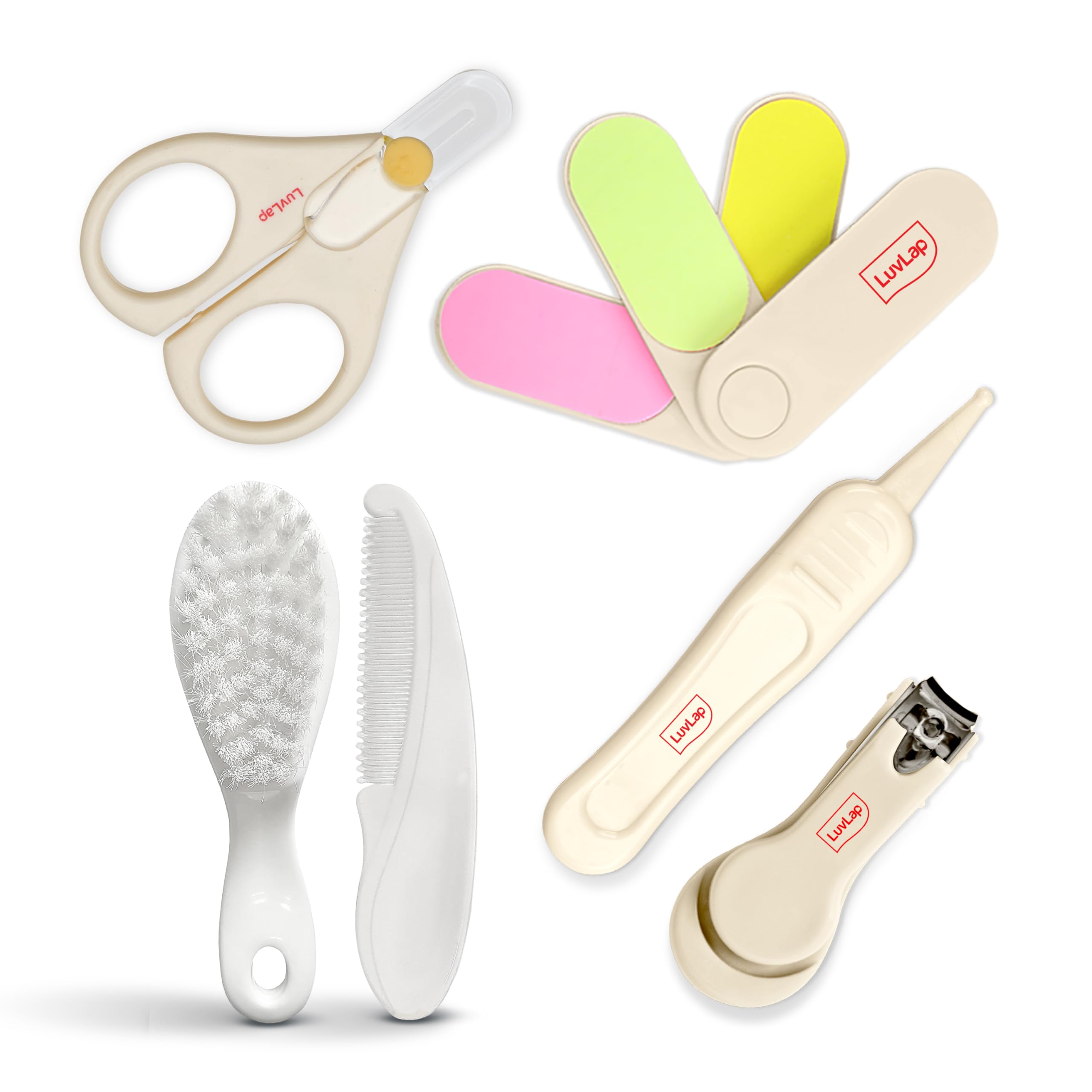 LuvLap Baby 4pcs Nail Grooming Set and Elegant Baby Comb & Brush Set with Soft bristles, Grooming Set, Baby Nail Cutter, Baby Nail Scissor, New Born Grooming Kit, 0M+, White