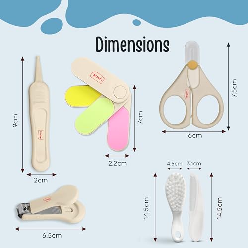 rounded edges of sissors to avoid prick in delecate skin. The fine nylon bristles of the hair brush gently brush baby's scalp