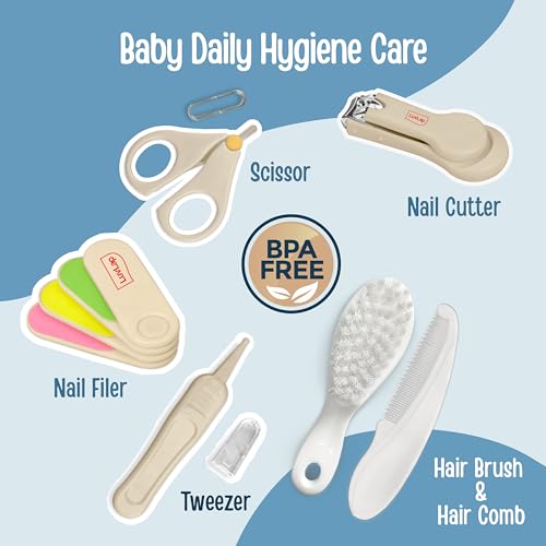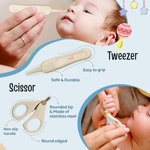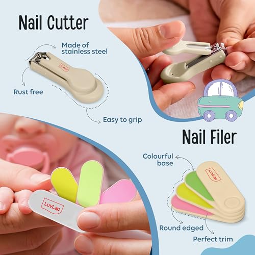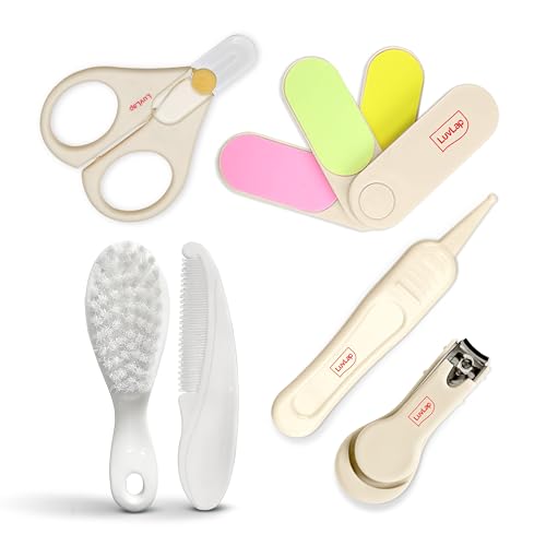 LuvLap Baby 4pcs Nail Grooming Set and Elegant Baby Comb & Brush Set with Soft bristles Grooming Set