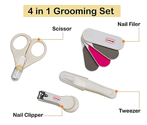 LuvLap Baby Nail & Hair Grooming Set Contains 4pcs Nail Grooming Items & Hair Grooming Natural Soft