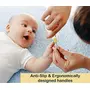 rounded edges of sissors to avoid prick in delecate skin. The natural bristles of the hair brush gently brush baby's scalp