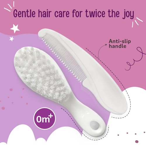 LuvLap Elegant Baby Comb & Brush Set, Soft Bristles for Gentle Hair Grooming, Complete Hair Grooming Kit for Infants, Newborns & Toddlers, Suitable from Birth (0M+), Perfect Baby Shower Gift