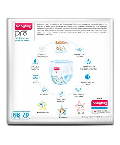 babyhug Pro Bubble Care Premium Pant Style Diaper New Born (Nb), Unisex - Size - 70 Pieces