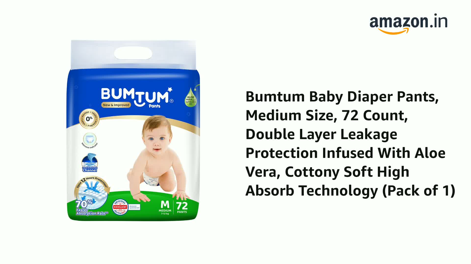 Bumtum Baby Diaper Pants, Medium Size, 72 Count, Double Layer Leakage Protection Infused With Aloe Vera, Cottony Soft High Absorb Technology (Pack of 1)