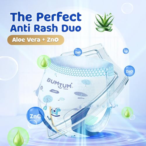 BUMTUM PANT-STYLE DIAPERS: are uniquely curated to keep your baby's day & night full of comfort and materialized with cottony soft breathable and non-woven material that ensures a cosy experience.