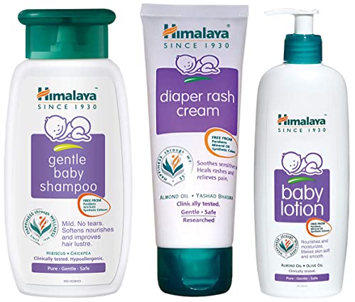 Himalaya Baby Body Lotion, For All Skin Types (400 ml) & Gentle Baby Shampoo (200ml) & Himalaya Diaper Rash Cream,100gm