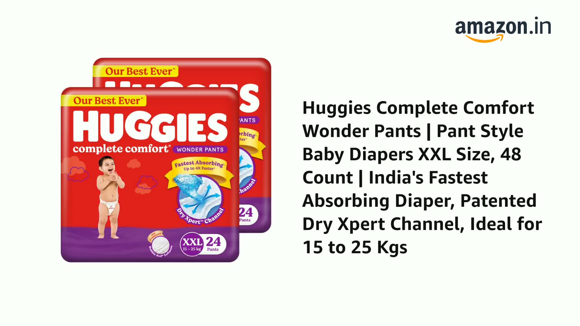 Huggies Complete Comfort Wonder Pants | Pant Style Baby Diapers XXL Size, 48 Count | India's Fastest Absorbing Diaper, Patented Dry Xpert Channel, Ideal for 15 to 25 Kgs