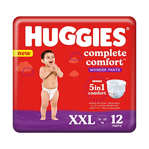 Huggies Complete Comfort Wonder Pants Double Extra Large (XXL) Size Baby Diaper Pants 12 count with 5 in 1 Comfort