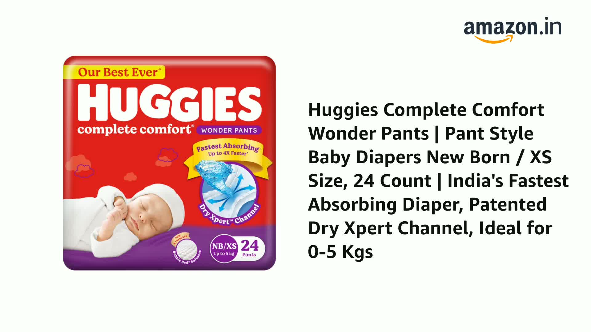 Huggies Complete Comfort Wonder Pants | Pant Style Baby Diapers New Born / XS Size, 24 Count | India's Fastest Absorbing Diaper, Patented Dry Xpert Channel, Ideal for 0-5 Kgs
