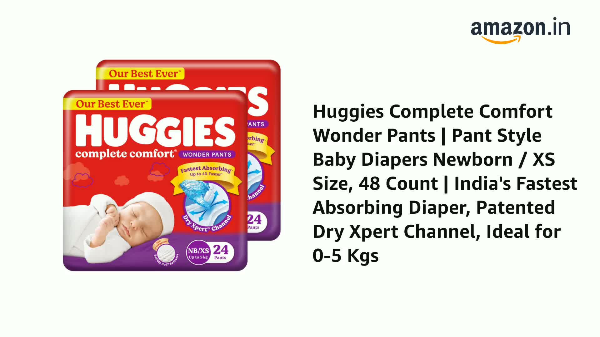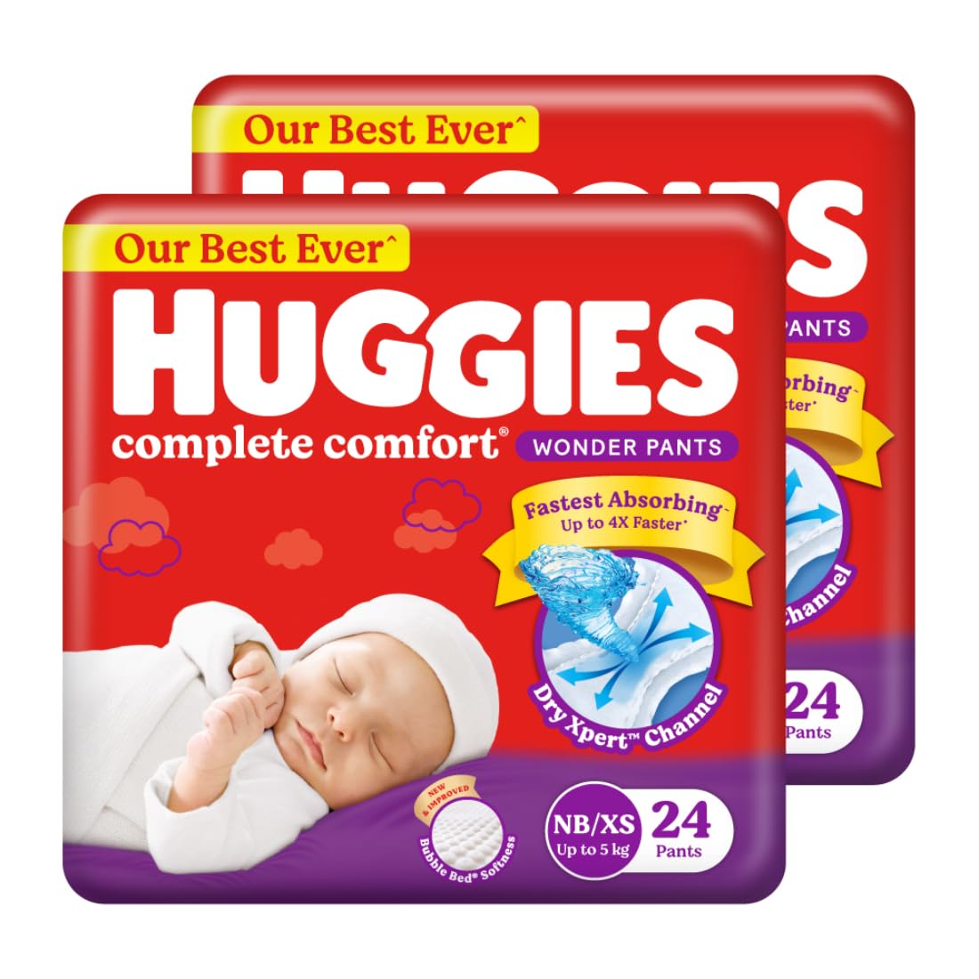 Huggies Complete Comfort Wonder Pants | Pant Style Baby Diapers Newborn / XS Size, 48 Count | India's Fastest Absorbing Diaper, Patented Dry Xpert Channel, Ideal for 0-5 Kgs