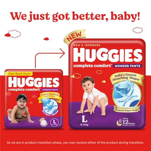 New & Improved Huggies Complete Comfort Wonder Pants - India's Fastest Absorbing diaper with Patented Dry Xpert Channel; Large size / L Size baby diapers