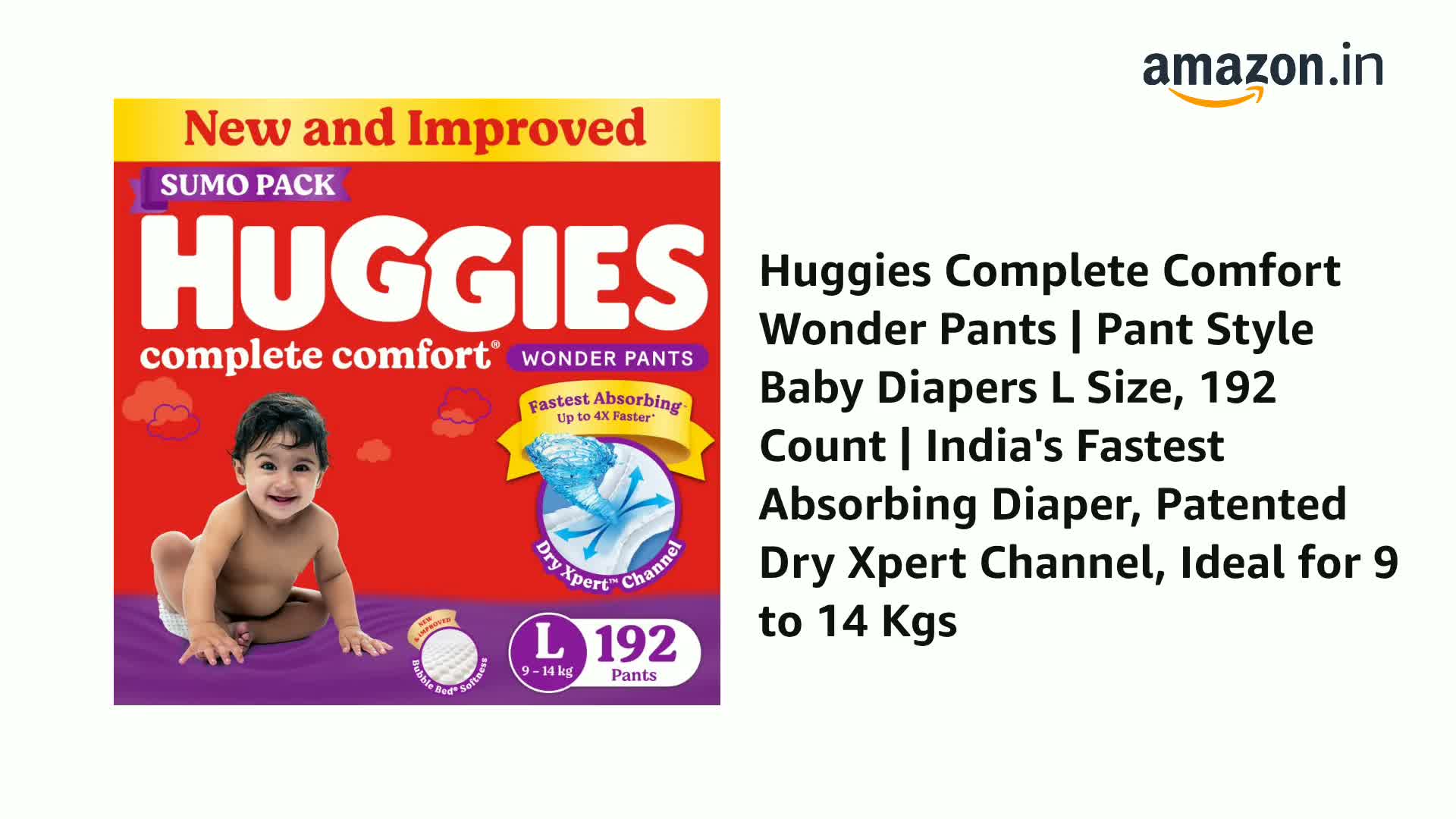 Huggies Complete Comfort Wonder Pants | Pant Style Baby Diapers L Size, 192 Count | India's Fastest Absorbing Diaper, Patented Dry Xpert Channel, Ideal for 9 to 14 Kgs