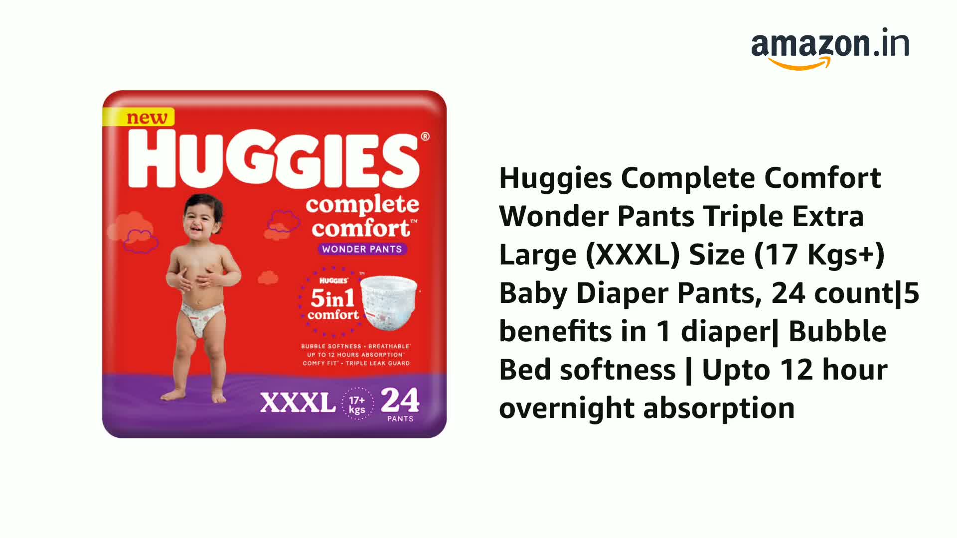 Huggies Complete Comfort Wonder Pants Triple Extra Large (XXXL) Size (17 Kgs+) Baby Diaper Pants, 24 count|5 benefits in 1 diaper| Bubble Bed softness | Upto 12 hour overnight absorption