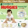 Huggies Natural Soft Premium Baby Diaper Pants, Our No.1 Soft Pants, Large (L) Size (9-14 Kgs), Monthly Pack of 100 diapers | Cloud Softness All over with India's 1st Cloud Touch Belt