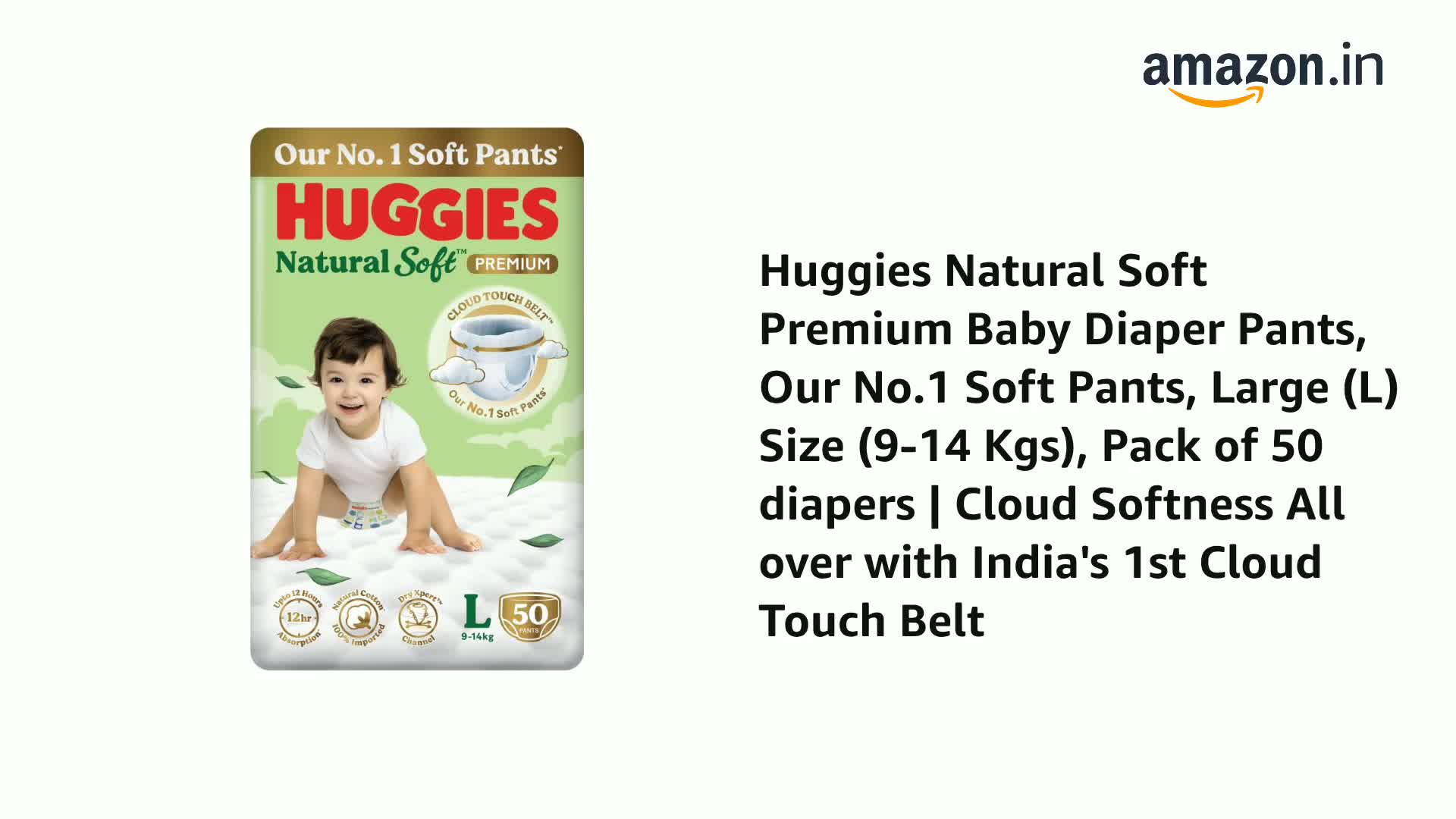 Huggies Natural Soft Premium Baby Diaper Pants, Our No.1 Soft Pants, Large (L) Size (9-14 Kgs), Pack of 50 diapers | Cloud Softness All over with India's 1st Cloud Touch Belt