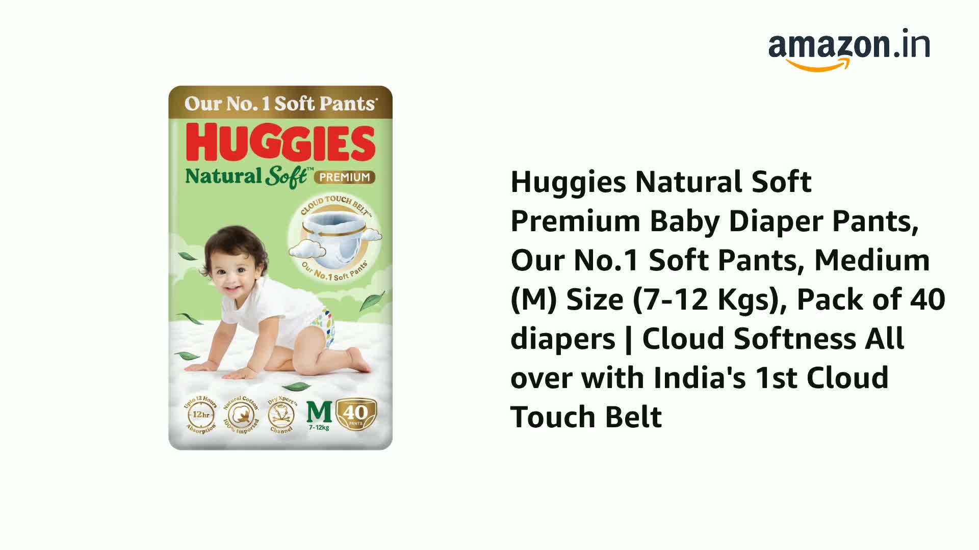 Huggies Natural Soft Premium Baby Diaper Pants, Our No.1 Soft Pants, Medium (M) Size (7-12 Kgs), Pack of 40 diapers | Cloud Softness All over with India's 1st Cloud Touch Belt