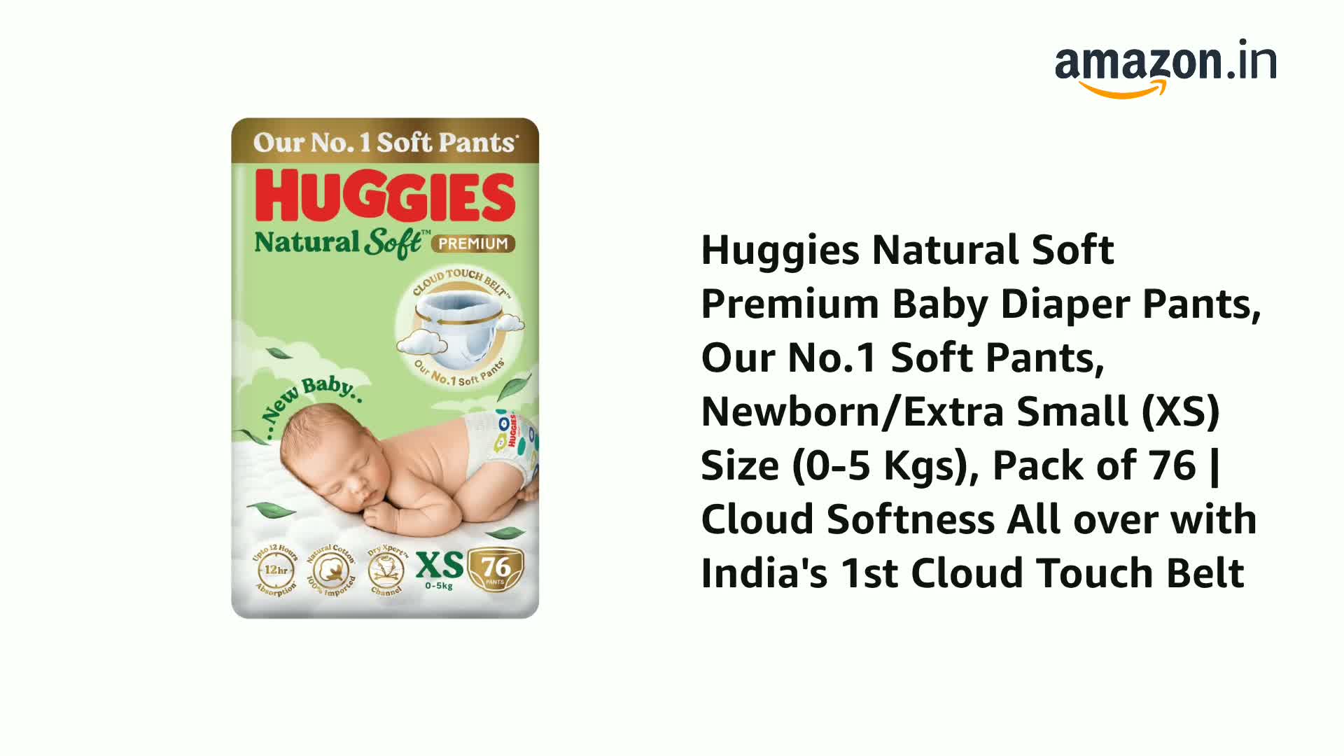 Our No.1 soft Pants: New & Premium Huggies Natural Soft comes with India's 1st Cloud Touch BeltTM with cloud softness all over to help prevent red marks; New Born/Extra Small (XS) Size (0-5 Kgs) Pack of 76 diapers