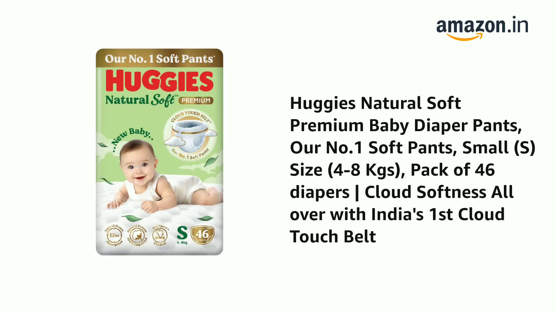 HomeBabyDiaperingBaby DiapersHuggies Natural Soft Premium Baby Diaper Pants, Our No.1 Soft Pants, Small (S) Size (4-8 Kgs), Pack of 46 diapers | Cloud Softness All over with India's 1st Cloud Touch Belt