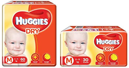 Huggies New Dry, Taped Diapers, Medium, 60 Counts & Medium, 30 Count