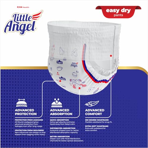 Little Angel Easy Dry Pull-Up Diaper Unisex Pants With 12 Hrs Absorption Small(S) Size,Pack Of 2,4-8Kg-S(156 Pieces)