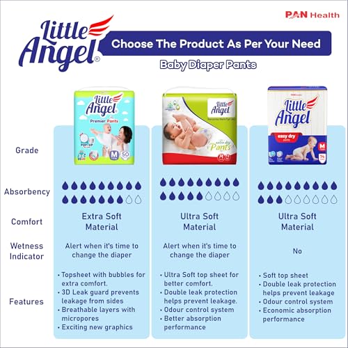Little Angel Premier Pants Baby Diapers, Medium (M) Size, 50 Count with Wetness Indicator, 7-11 Kg