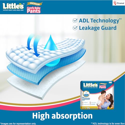 Little's Premium Baby Diapers XL Size (Extra Large) Pants Style | 12-17 kg | 48 Count - Pack of 2 | CottonSoft Baby Diaper with Leakage Guard, Wetness Indicator & 12 Hours Absorption