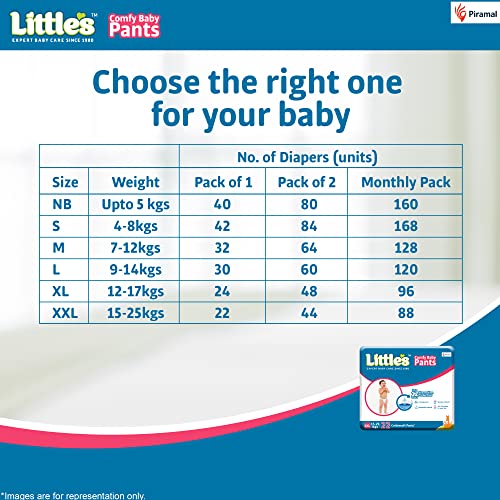 HomeBabyDiaperingBaby DiapersLittle's Baby Pants Diapers Extra Extra Large (XXL) 15-25 kg 44 Units x Pack of 2 White with Wetness Indicator & 12 Hours Absorption