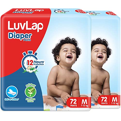 LuvLap Baby Diaper Pants M Size (Medium) Pack of 144 Count (72x2) Jumbo pack & LuvLap Paraben Free w