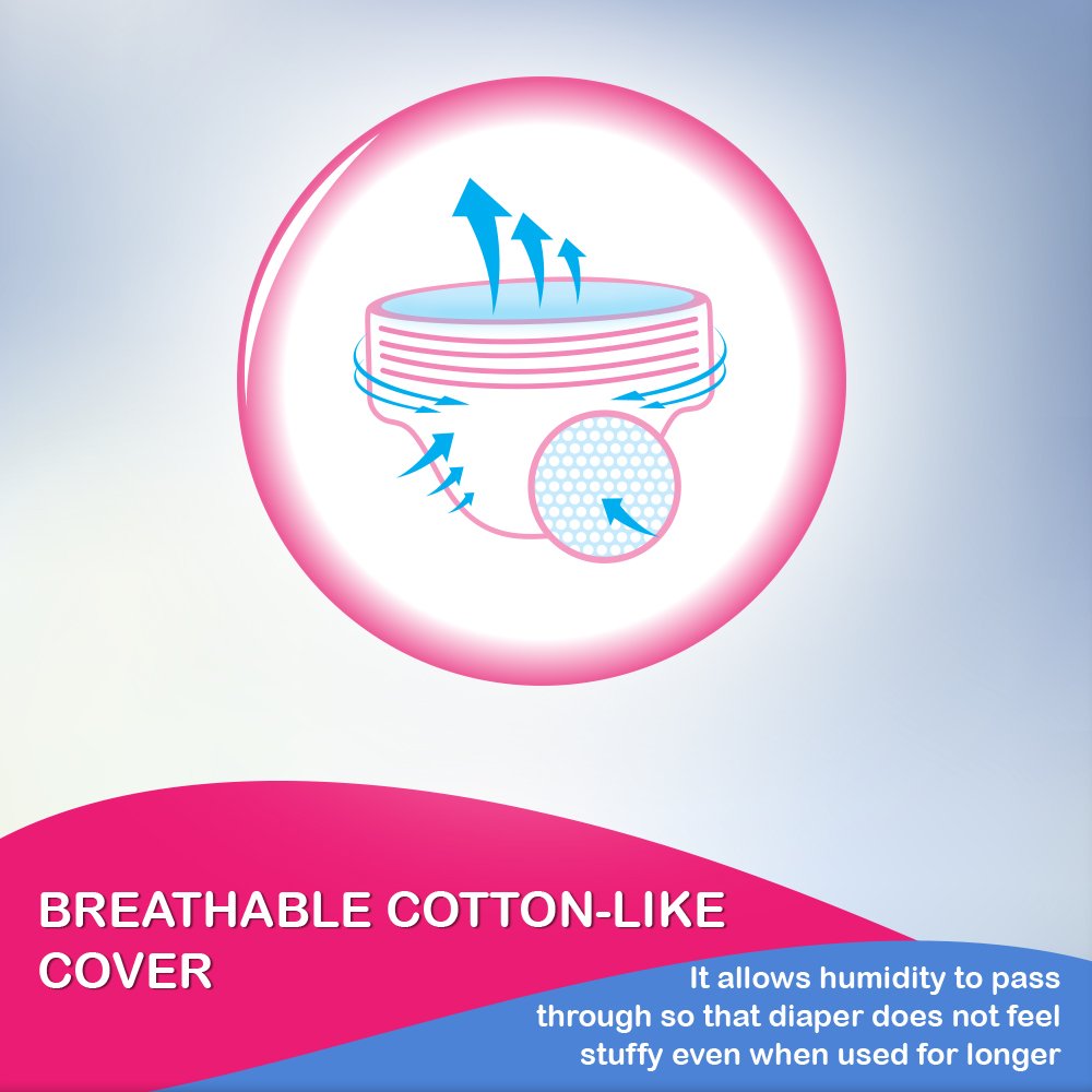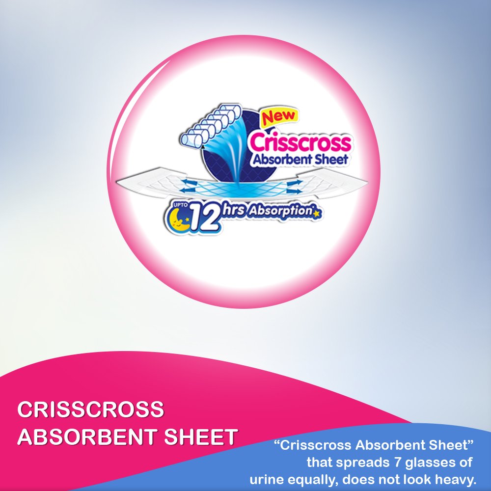 All-round elastic wide band - it is easy to fit gentle on skin and its breathable material keeps the child fresh and comfortable.Maxi-Absorbent core - Quickly absorbs up to 6 glasses and gives your child long lasting dryness