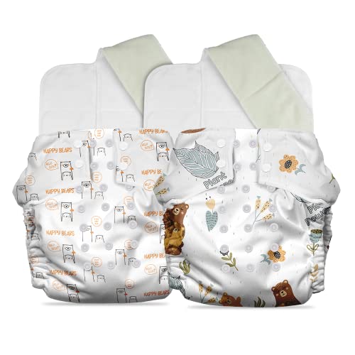 Mother Sparsh Plant Powered Cloth Diaper for Babies-Free Size | Medical Grade Fabric with 100% Organic Cotton | 13 Layer Breathable Soaker With Built-In Booster Pad | Pack of 2 (B.Hug&B.Cute)