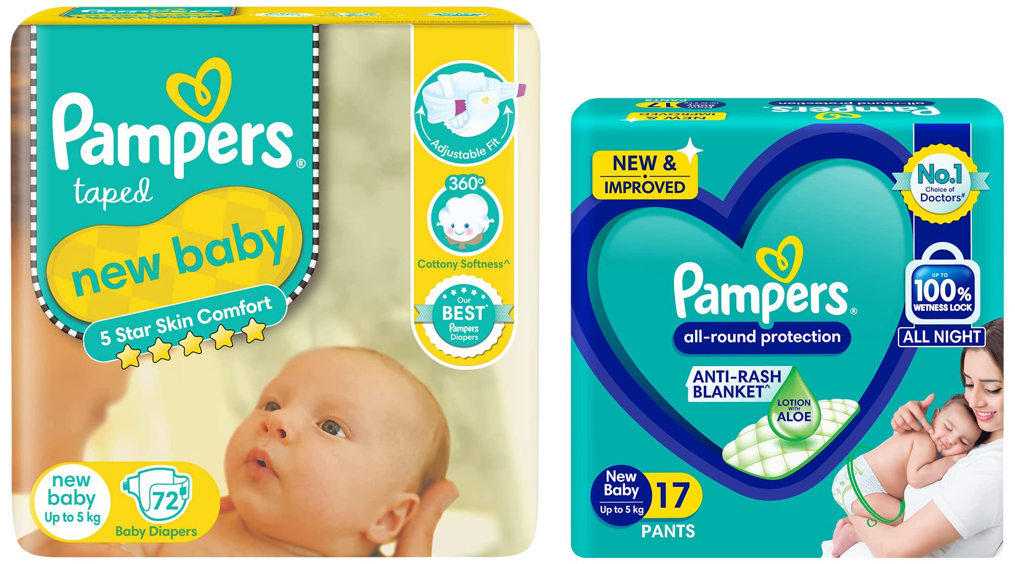 HomeBabyDiaperingBaby DiapersPampers Active Baby Diapers, New Born, Extra Small, (NB, XS) size, 72 Count & Pampers All round Protection Pants, New Born, Extra Small size baby diapers (NB/XS), 17 Count