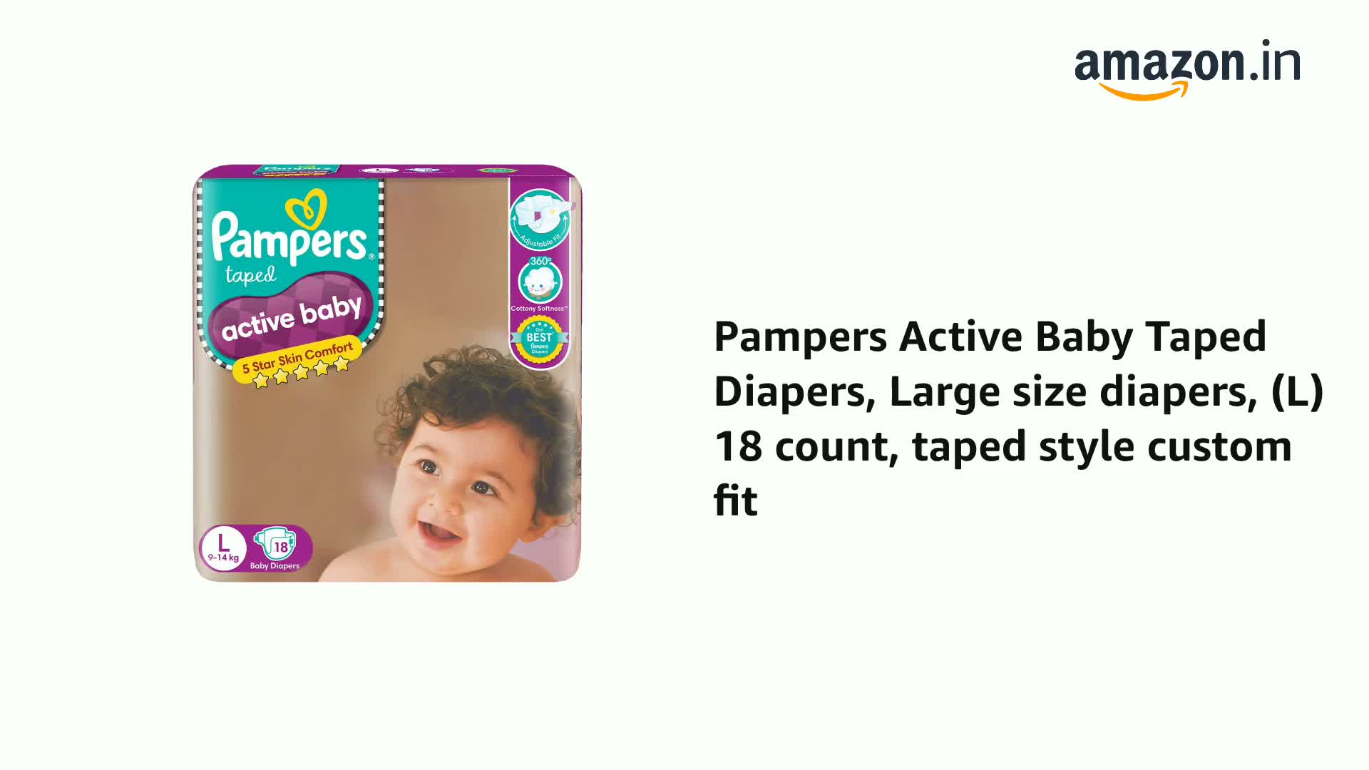Pampers Active Baby Taped Diapers, Large size diapers, (L) 18 count, taped style custom fit