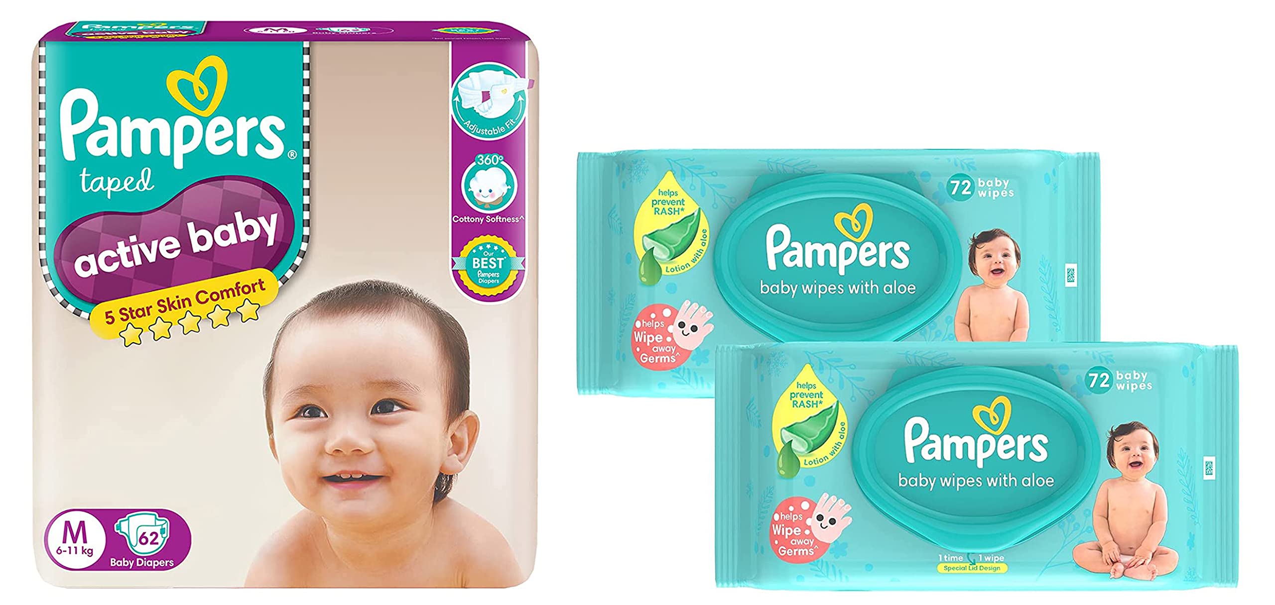 Product 1: Pampers Active Baby Diapers taped style diapers No. 1 choice of Doctors