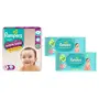 Pampers Active Baby Taped Diapers, Medium size diapers, (M) 62 count, taped style custom fit & Baby Gentle Wet Wipes with Aloe Vera 144 Wipes