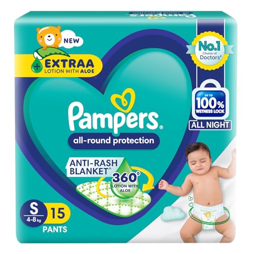 HomeBabyDiaperingBaby DiapersPampers All Round Protection Pant Style Baby Diapers, Small (S), 15 Count, Anti Rash Blanket, Lotion with Aloe Vera, 4-8 Kg Diapers