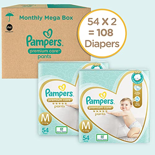 Pampers Premium Care Pants, Medium size baby diapers (M), 108 Count, Softest ever Pampers pants & Pampers Active Baby Taped Diapers, Medium size diapers, (M) 62 count, taped style custom fit