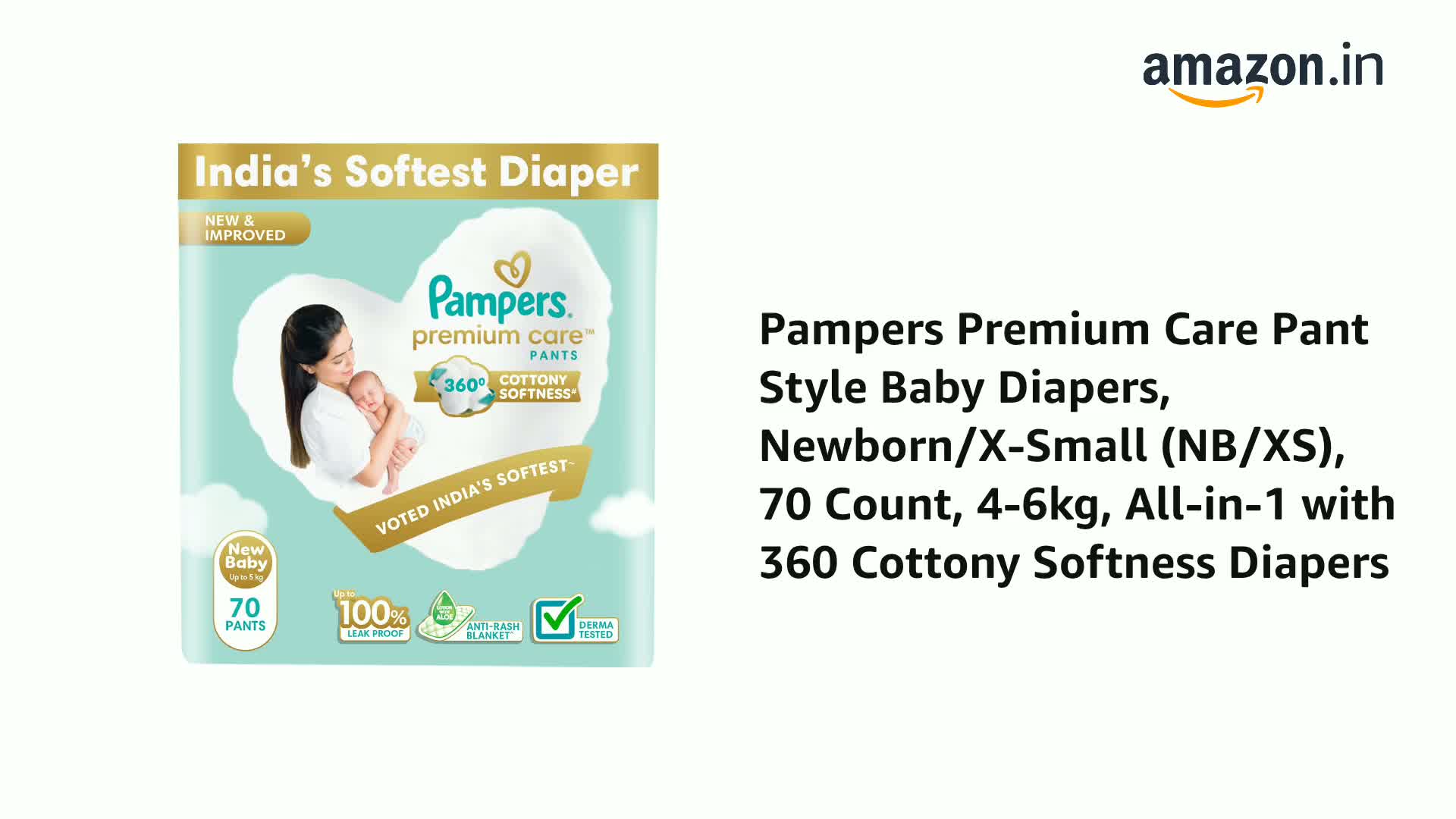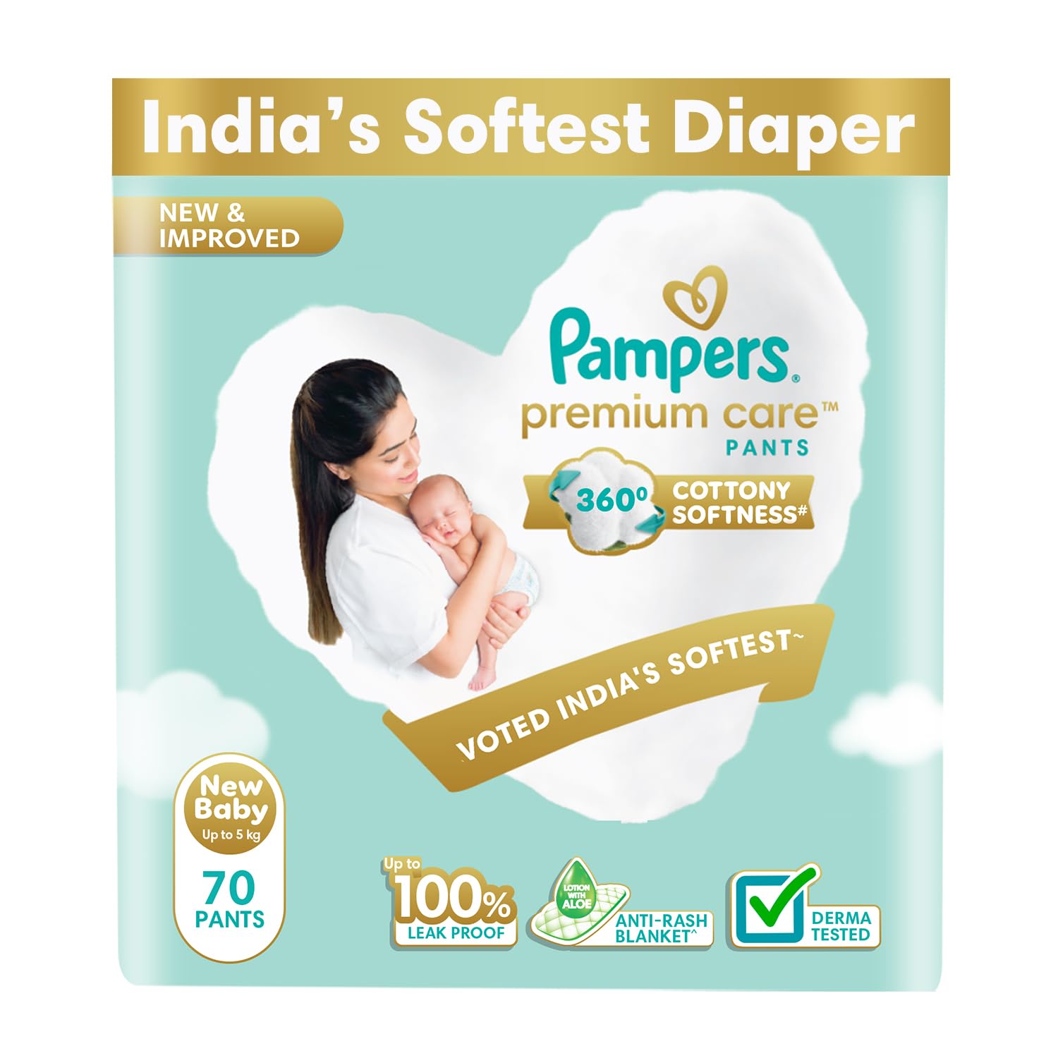 Pampers Premium Care Pant Style Baby Diapers, Newborn/X-Small (NB/XS), 70 Count, 4-6kg, All-in-1 with 360 Cottony Softness Diapers