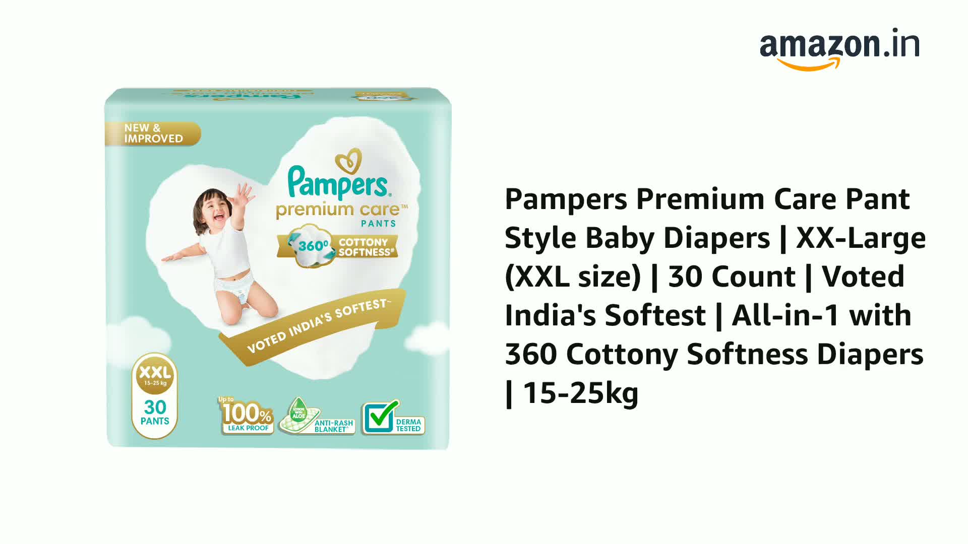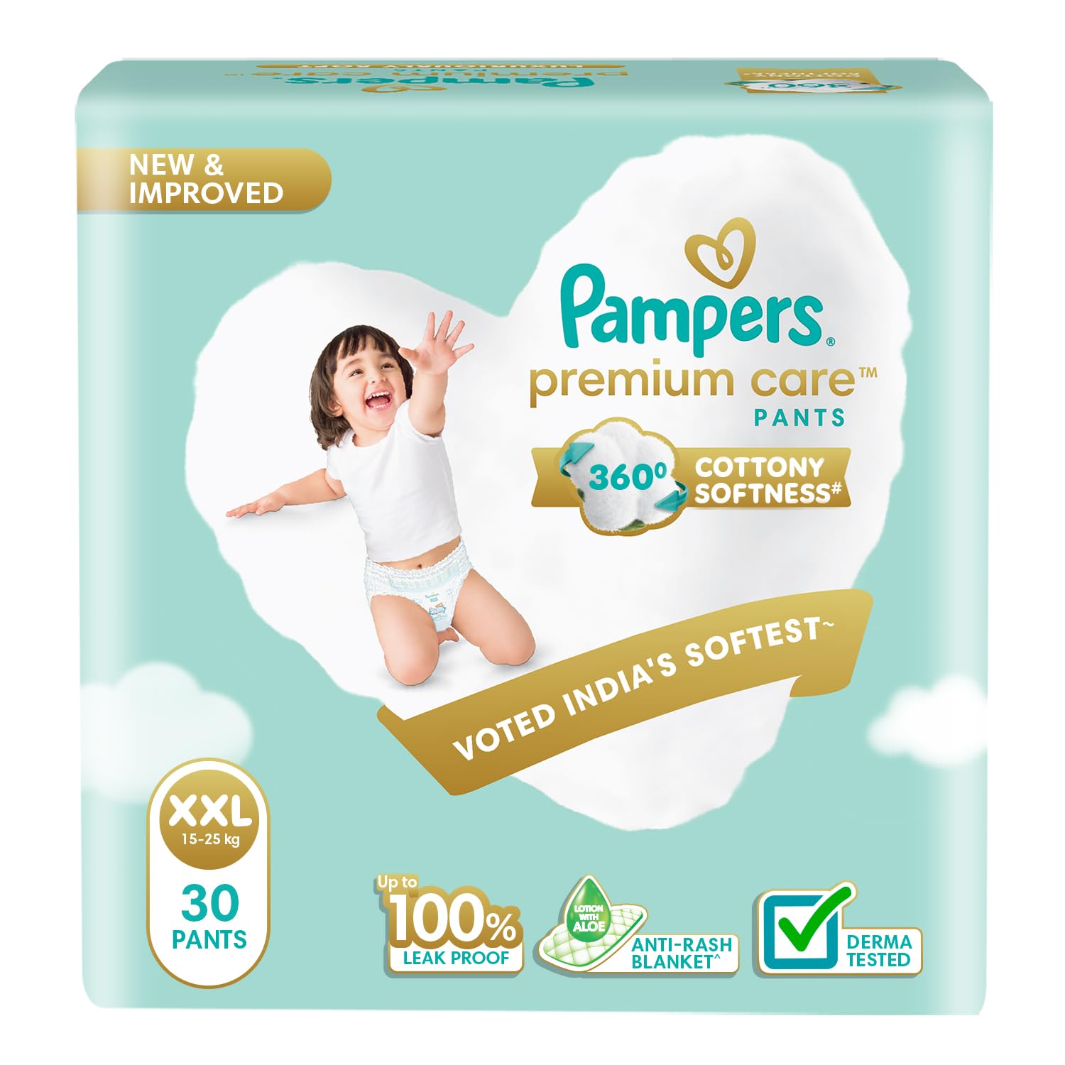 Pampers Premium Care Pant Style Baby Diapers | XX-Large (XXL size) | 30 Count | Voted India's Softest | All-in-1 with 360 Cottony Softness Diapers | 15-25kg