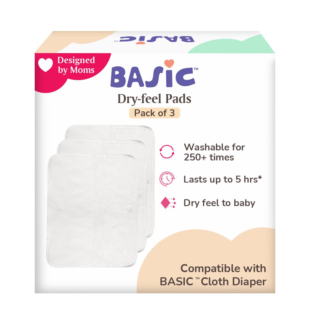 superbottoms BASIC Quick Dry Pads Insert | Diaper liner for Adjustable Cloth Diaper,Washable & Reusable (Compatible with BASIC diapers) |Freesize Cloth Diaper-Unisex Baby,Pack of 3, 1 count