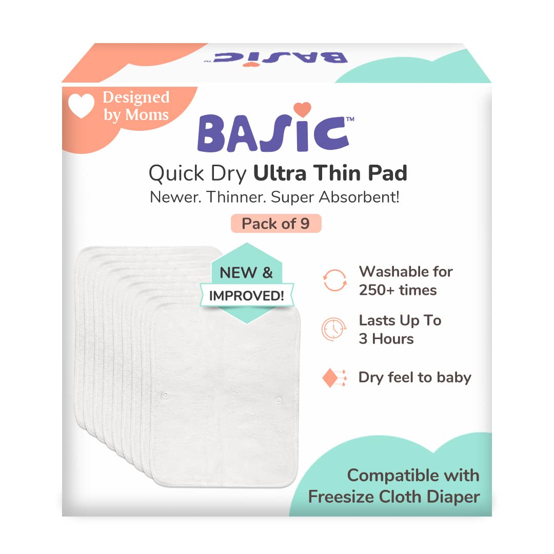 ULTRATHIN - The New and improved Quick Dry UltraThin Pads are foldable style 4 layered pads which can be attached to the cloth diaper. It's UltraThin Design is light for the baby fits better and looks trimmer.