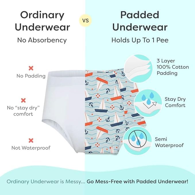 SuperBottoms Padded Underwear For Growing Babies/Toddlers|With 3 Layers Of Cotton Padding & Super DryFeel Layer| Pull-Up For Potty Training & Diaper-Free Time(Need Space- Sea You, Size: 3, Pack of 2)
