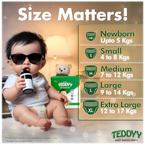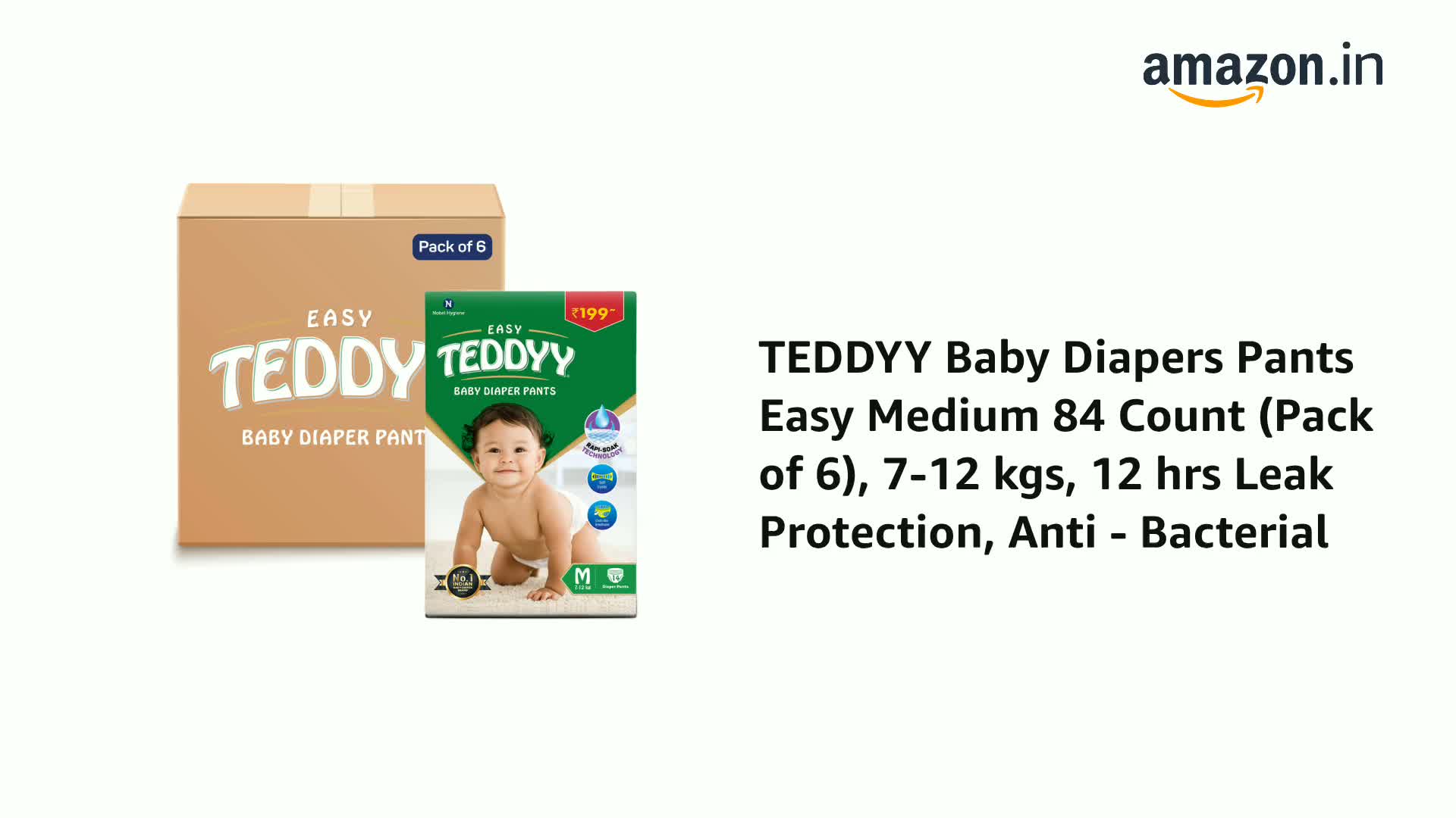 TEDDYY Baby Diapers Pants Easy Medium 84 Count (Pack of 6), 7-12 kgs, 12 hrs Leak Protection, Anti - Bacterial