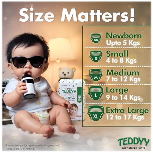 TEDDYY Baby Easy Small Diaper Pants 56 Count (Pack of 1), 4-8 kgs, 12 hrs Leak Protection, Anti - Bacterial