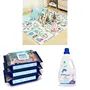 BUMTUM Waterproof Portable Foldable Foam Baby Play Mat & Bumtum Baby Chota Bheem Gentle Soft Moisturizing Wet Wipes (Pack of 3, 72 Pcs. Per Pack) & Baby Liquid Laundry Detergent 1 Litre,
