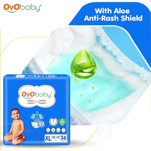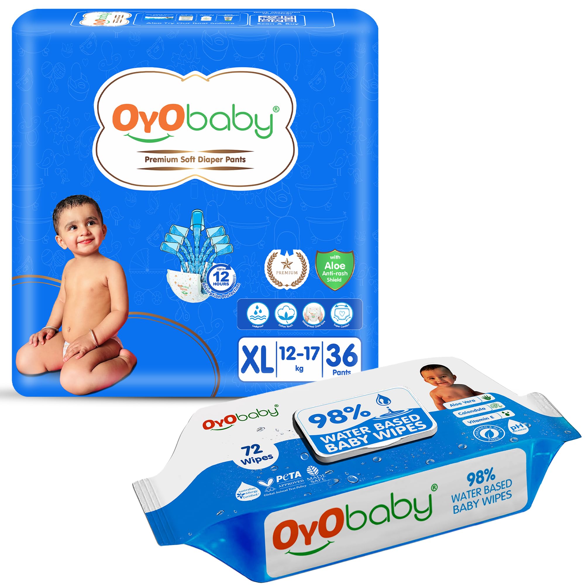 OYO BABY Diapers | Long Lasting Dry Night & Comfortable Sleep Style Diaper Pants, 36 Count (Pack of 1), & OYO BABY Soft Cleaning with Aloe Vera Baby Wipes Lids 72 Counts (Combo Pack)
