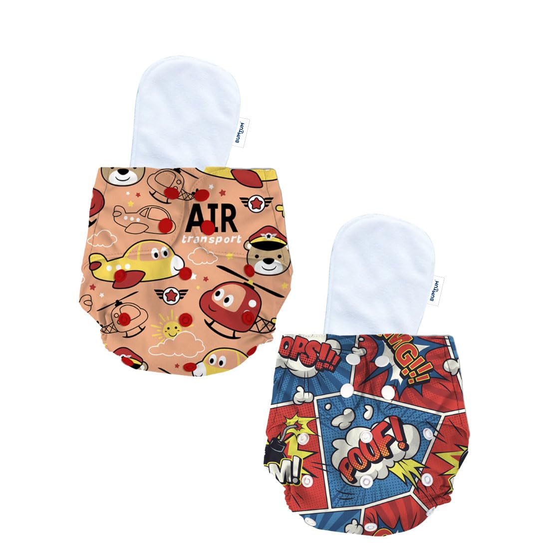Bumtum Baby Diaper | 0-3 Yrs Baby Freesize | Pack of 2, New Born Baby Diaper, Cloth Diaper, Waterproof Reusable Diaper, 5hrs Absorbency, Washable, Cotton Soaker, Extra Soft (Air & Poof)